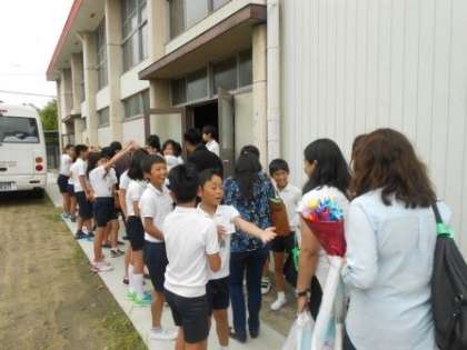 「なかみち国際交流デー」の様子です。給食の時間も一緒に教室で昼食を食べていただきました。本校を出発するときは、子どもたちが見送ってくれました。