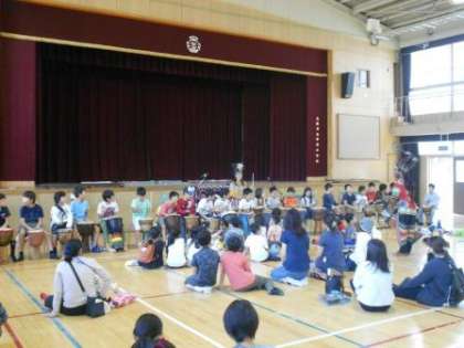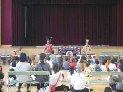音楽イベントは「マリンバの調べとアフリカンダンス」でした。お二人の講師の先生にお越しいただき、ジェンベ体験で太鼓をたたかせてもらいました。子どもたちはたくさんの楽器を前に大喜びでした。短い時間でしたが、アフリカの空気を感じることができたと思います。
