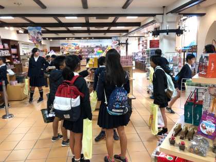キャラクターとふれあい、お土産を買っていました。遊ぶ時間と買い物の時間をきちんと考えて活動している様子に感心しました!