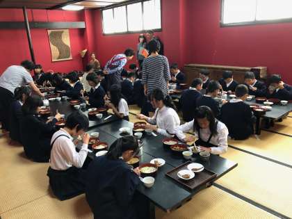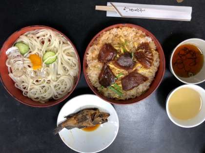 本日の昼食です。子どもたちには伊勢うどんと手こね寿司に魚釣りで釣った魚の煮付けが一人ずつ付いていました!