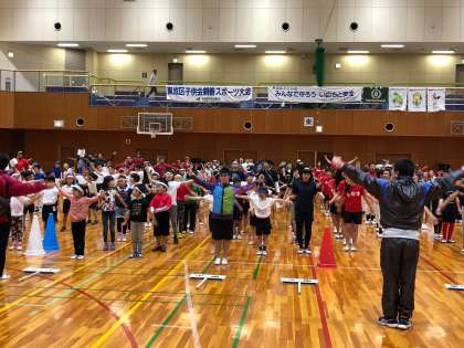 東成区子ども会スポーツ大会が東成スポーツセンターで開催されました。大声コンテストでは、中道代表の子どもたちは頑張っていました!