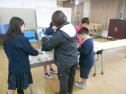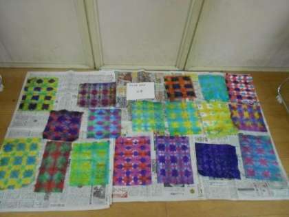 3月12日(火) 放課後に本年度最後のくすのき交流会を行いました。子どもたちは、おり染めを行いました。とてもきれいに染めあがった作品は本当に素敵でした。