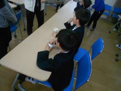 作品をつくった後は、4時間目に4年生が作ってくれたポップコーンをみんなで食べました。とてもおいしかったです。最後は、一人一人が1年間にがんばったことを発表し、先生方手作りのメダルをプレゼントしてもらいました。みんな大変喜んでいました。