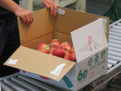 せりの体験をしました。数字を表す指使いを教えてもらい、リンゴの競りをしました。競り落とされたリンゴです。1人一個ずつお土産にいただきました。2018年に新登録された、市場にあまり出ていない、シナノリップという新品種だそうです。希少なリンゴをありがとうございました。