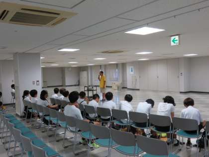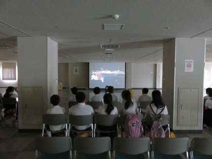 最後にホールで映像を視聴し、中央卸売市場のことや日本の食料事情について学びました。今日教えてもらったことは、今後の授業に活かしたいと思います。