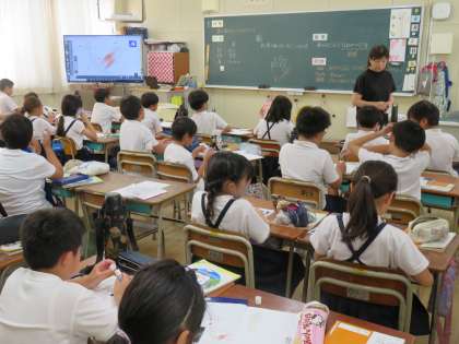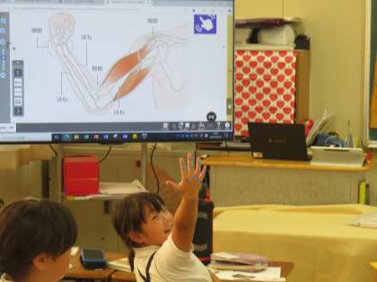 理科の授業の様子です。ヒトの体について学んでいました。骨格と筋肉の動きについて考えていました。手の関節にシールを貼って、動きの観察をしていました。貼ることで手の細かい動きが分かったようです。今日、人間の体には骨が206本あることを知りました。すごく多いですね。