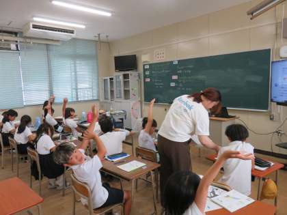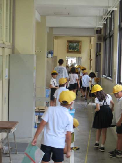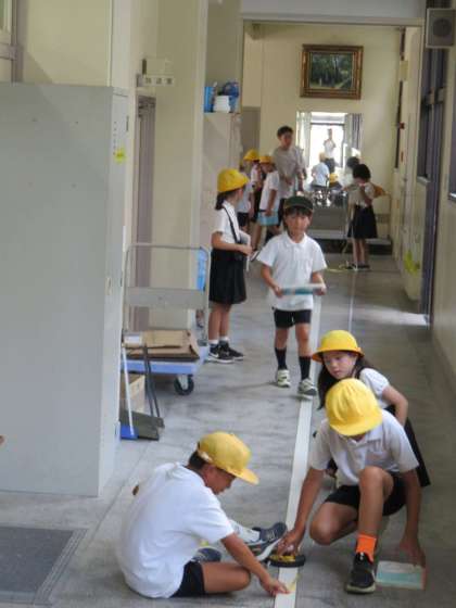 算数の授業の様子です。習熟度別少人数で学習をしていました。長さの学習でした。北校舎の東の端から、教室までの長さをメジャーを使って調べていました。体験的な活動をすることで、長さに対する興味がわいてきますよね。大切な学習です。