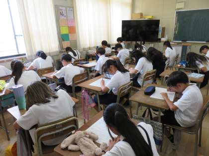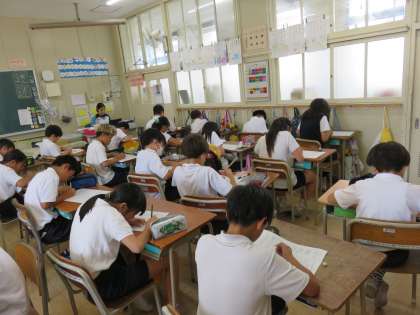 国語の授業の様子です。テストをしていました。2学期最初のテストになるのかな。気合をしっかりと入れて、がんばりましょう。