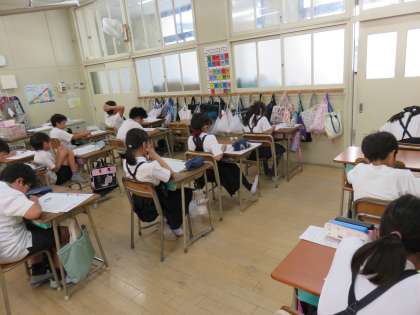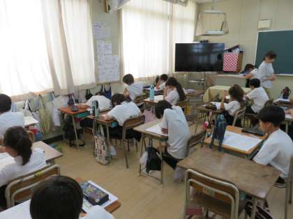 国語の授業の様子です。テストをしていました。みんな集中して取り組む姿が、素晴らしかったです。