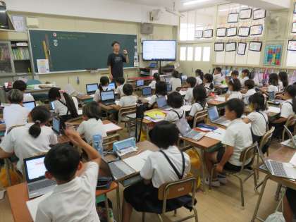 社会科の授業の様子です。パソコンを使って、消防署の仕事の調べ学習をしていました。消防の仕事といっても色々ありますね。火事・救急搬送・啓発活動・設備点検等、細かく調べましょう。