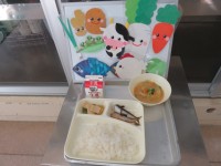 今日の献立は、ハヤシライス・洋なし(カット缶)・グリーンアスパラガスとコーンのサラダ・牛乳です。