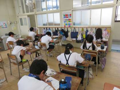 算数の授業の様子です。テストをしていました。みんな集中して取り組んでいました。