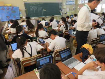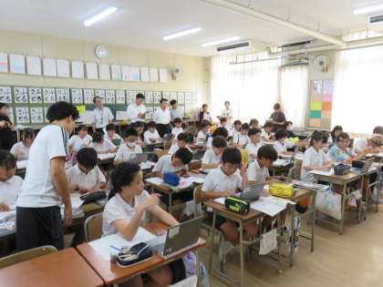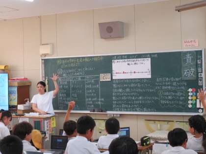 5校時に5年生の授業研究会を行いました。多くの教員の見守る中、子ども達は積極的に発言し楽しく授業を受けていました。子ども達のがんばる姿に、大きな成長の後を感じました。
