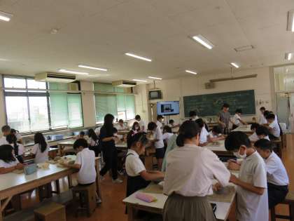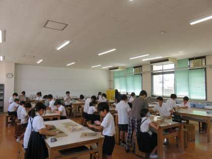 図画工作科の授業の様子です。図工室で陶芸の作品作りをしていました。兜を作っていました。自分だけの兜の制作、4年生のいい思い出になりますね。がんばりましょう。