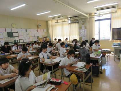 社会科の授業の様子です。鎌倉時代末期の元寇について考えていました。鎌倉幕府の崩壊につながる、重要な出来事ですね。資料を参考にして、しっかり考えましょう。