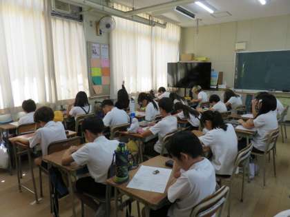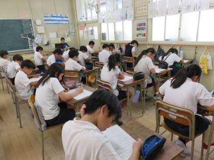 国語の授業の様子です。テストをしていました。鉛筆の、かさかさという走る音しか聞こえてきませんでした。みんな集中して取り組んでいました。