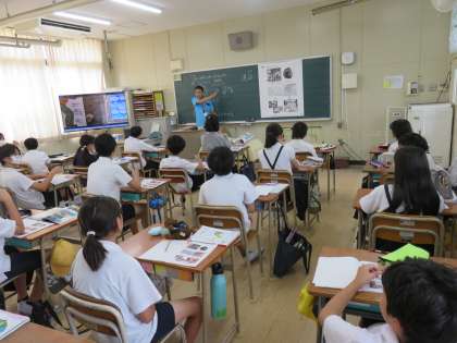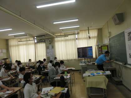 理科の授業の様子です。化石について学習していました。どうやってできたのかについて考えていました。学校にも化石の標本があります。でも、一度でいいから自分で見つけてみたいですね。許可を得た上で化石の出てくる場所に行けば、化石を発掘することができますが。