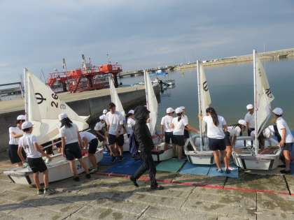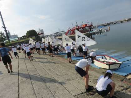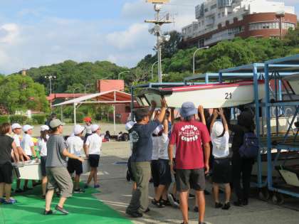 OPヨット体験も終わり、みんなで後片付けをしています。楽しかったです。