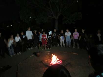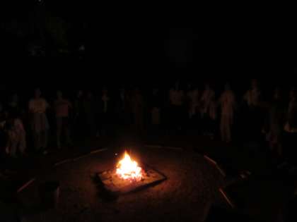消えゆく炎の中、大きな思い出を残し、キャンプファイヤーは終わりました。