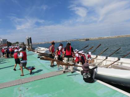 カッター体験も終わりです。桟橋に帰ってきました。少し腕がつかれたようです。