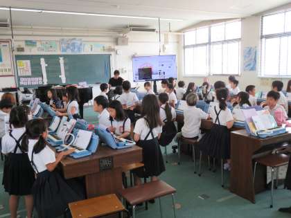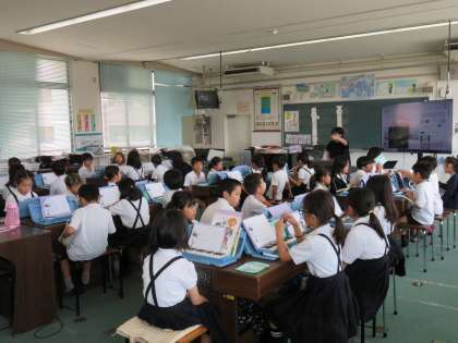音楽の授業の様子です。みんなで「エーデルワイス」を歌っていました。歌った後は、鍵盤ハーモニカで合奏をするそうです。「エーデルワイス」は、ミュージカル映画「サウンドオブミュージック」に出てくる名曲ですね。いい歌は、時代を越えて歌い継がれていきますね。