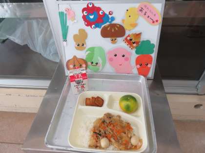 今日の献立は、中華丼・あつあげの中華だれかけ・みかん・牛乳です。