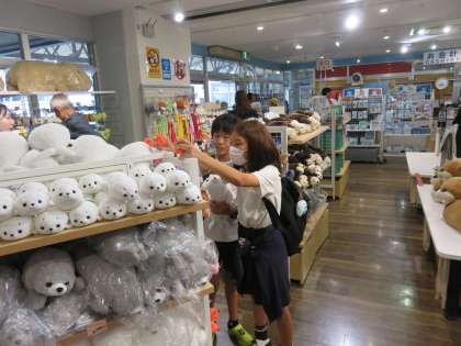 鳥羽水族館の自由行動の様子です。買い物をしています。