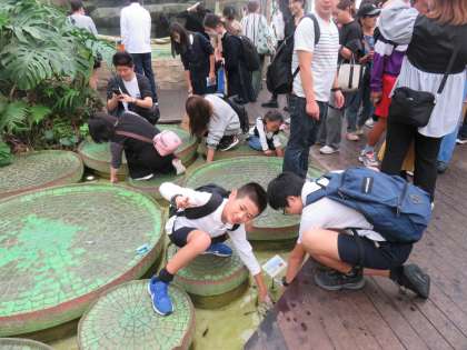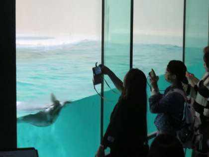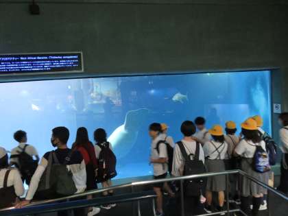 鳥羽水族館の自由行動の様子です。ここでしか見ることができないラッコは、行列ができていてなかなか見ることができません。