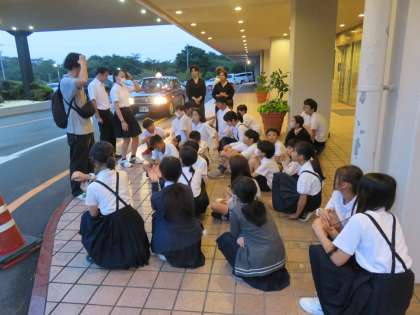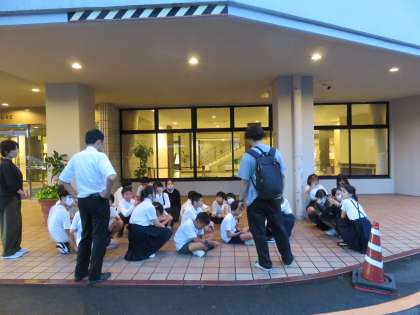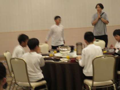 ホテルの到着し、避難訓練を行いました。この後、待ちに待った夕食です。
