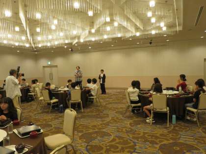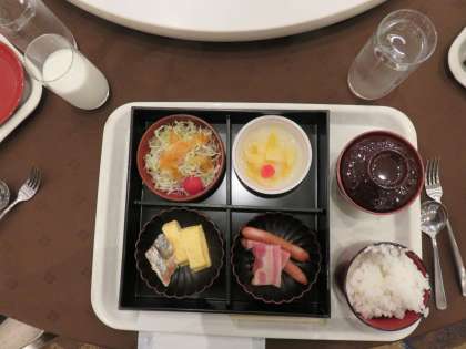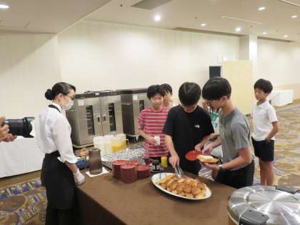 朝食の様子です。和食でしたが、パンや牛乳、ジュースなども選ぶことができます。クロワッサンをとる子も多くいました。
