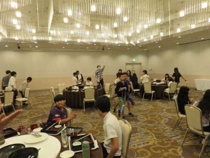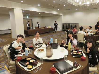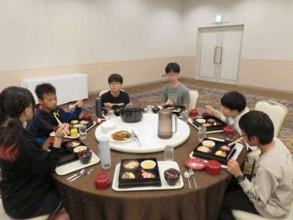 朝食の様子です。ごちそうさまをして、飲料を2本もらって、出発の用意です。着替えて部屋もきれいに片づけましょう。