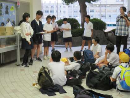 予定より少し遅れて学校に到着しました。帰校式の様子です。たくさんの思い出とお土産をもって、全員元気に帰ってきました。
