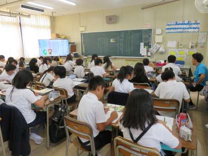 国語の授業の様子です。文法の学習をしていました。接続詞の使い方を考えていました。今日は逆接のつなぎ方でした。接続詞は他にもいろいろあるので、使い方をしっかり覚えましょう。