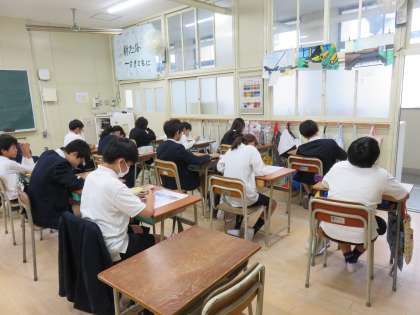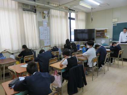 理科の授業の様子です。「大地のつくり」のテストをしていました。