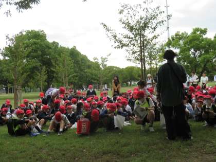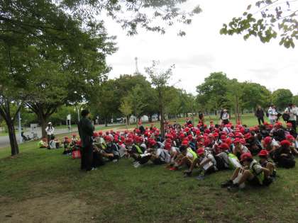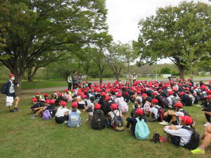 全班がラリーを終えて集まりました。この後はお待ちかね、お弁当