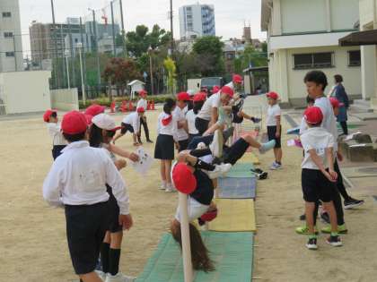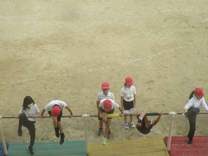 体育の授業の様子です。運動場で、鉄棒運動をしていました。寒くなると鉄棒は冷たくて使いにくいので、今がベストですね。できる技を増やしていきましょう。