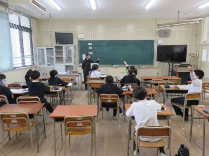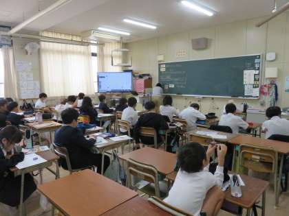 算数の授業の様子です。習熟度別少人数で学習をしていました。面積の学習でした。面積の表し方を考えていました。基礎的なところですが重要です。がんばりましょう。