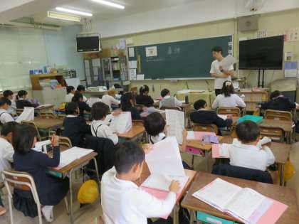 算数の授業の様子です。テストの間違い直しをしていました。先生の説明を聞きながら、訂正していました。すごくいい態度で話を聞いていました。