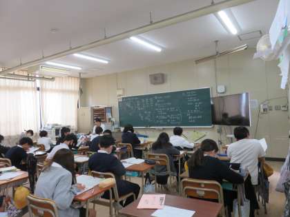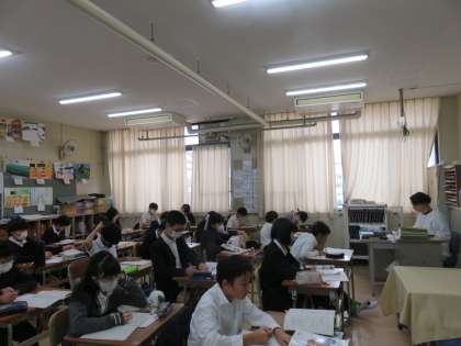 社会科の授業の様子です。復習のテストをしていました。半年分の学習の振り返りになるので、大変ですががんばりましょう。