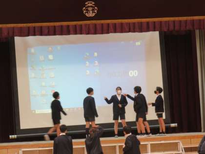 学習発表会の練習の様子です。舞台を使っての練習の様子です。最後の学習発表会ですね。みんなの協力で1つの作品を作り上げていきましょう。