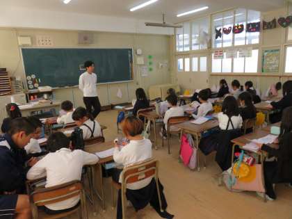 国語の授業の様子です。新出漢字の学習をしていました。新出漢字を書いた文を音読していました。声に出して読むと早く覚えますよね。しっかり覚えておきましょう。