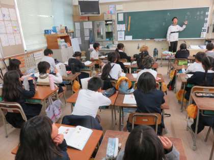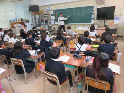 国語の授業の様子です。漢字の学習をしていました。音読みと訓読みについて学習していました。音訓の違いについて考えて、見分け方を学んでいました。