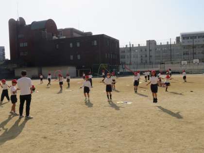 体育の授業の様子です。縄跳び運動をしていました。長縄跳びや、二人組や、個人技にチャレンジしていました。ワークシートでチェックしながらスキルを伸ばしています。目標の達成までがんばりましょう。