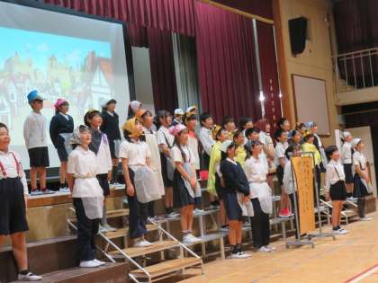 5年生の「世界でいちばんやかましい音の音読劇」の発表の様子です。国語の教科書に出世界でいちばんやかましい音」を基にしたコミカルで楽しい劇でした。長い台詞もありましたが、堂々といい表情で演技していました。さすが中道の高学年でした。素晴らしかったです。
