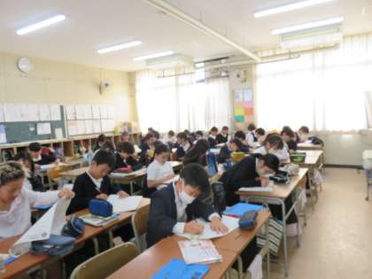 国語の授業の様子です。漢字テストをしていました。まとめの問題でした。習った漢字のうちどれくらい覚えているかが問われます。がんばりましょう。