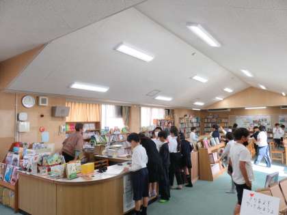 読書活動の授業の様子です。図書館で自由読書を楽しんでいました。4年生ともなれば、本の返却・貸し出しを係の子がしていました。すごいですね。将来は司書の先生になるのかな。