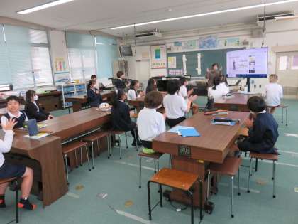 音楽の授業の様子です。曲のリズムに合わせてボディパーカッションをしていました。最近の子ども達は、リズム感がよくとっても上手でした。