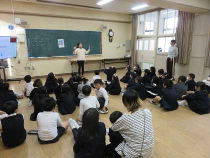 生活科の授業の様子です。C−NETから英語の授業を受けました。天気を表す英単語を学んでいました。廊下まできれいな英語の発音が聞こえてきました。とても楽しく学習していました。しっかり覚えておきましょう。