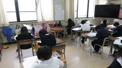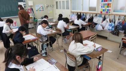 4年生様子です。鉛筆を走らせる音以外聞こえてきません。すごい集中力です。最後までがんばりましょう。