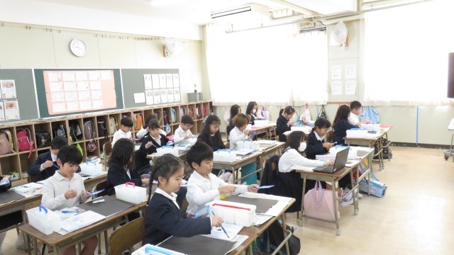 図画工作科の授業の様子です。クリスマスリースを作っていました。ツリーに飾り付けをしていました。みんなの個性が現割れる素敵な作品ですね。仕上がりが楽しみですね。